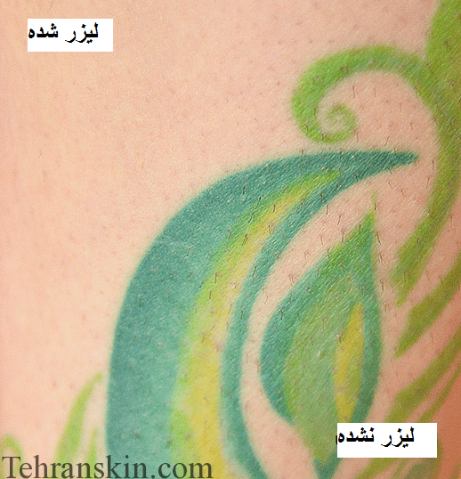 یکی از مهمترین تجربیاتی که میخوام در اختیارتون قرار بدم اینه که من یه خالکوبی خیلی بزرگ روی پام دارم. چیزی که خیلی منو شوکه کرد این بود که این ناحیه غیر قابل لیزر درمانیه! چون رنگدانه های خالکوبی، لیزر رو مختل می کنن و ممکنه منجر به سوختگی بشه. برای همین این تکه از پام رو هیچوقت درمان لیزر نکردم.
