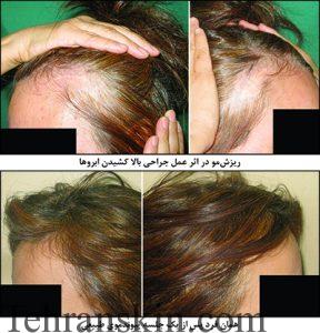 عمل جراحی رخ می دهد( مثلا در خط موها پس از عمل جراحی کشیدن پوست صورت و یا بالا بردن ابروها) که این وضعیت نیز